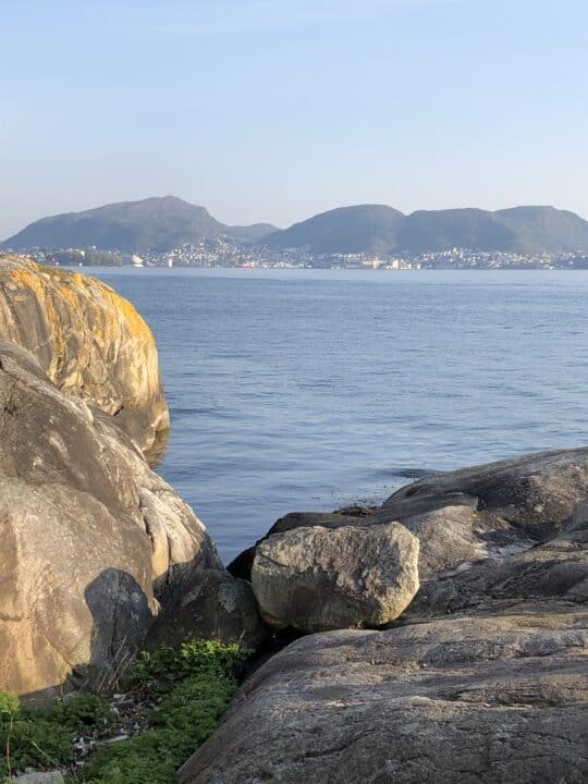 Omgivelsene er idylliske, med gressplen under veggen og gode bademuligeter for dem som ønsker det. Sommerstid er det mange som tar med grill og grillmat også.